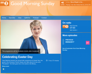 Really looking forward to my interview with Clare Balding on BBC Radio 2’s Good Morning Sunday programme. On this special edition for Easter Sunday, I’ll be talking about the Revelation album.